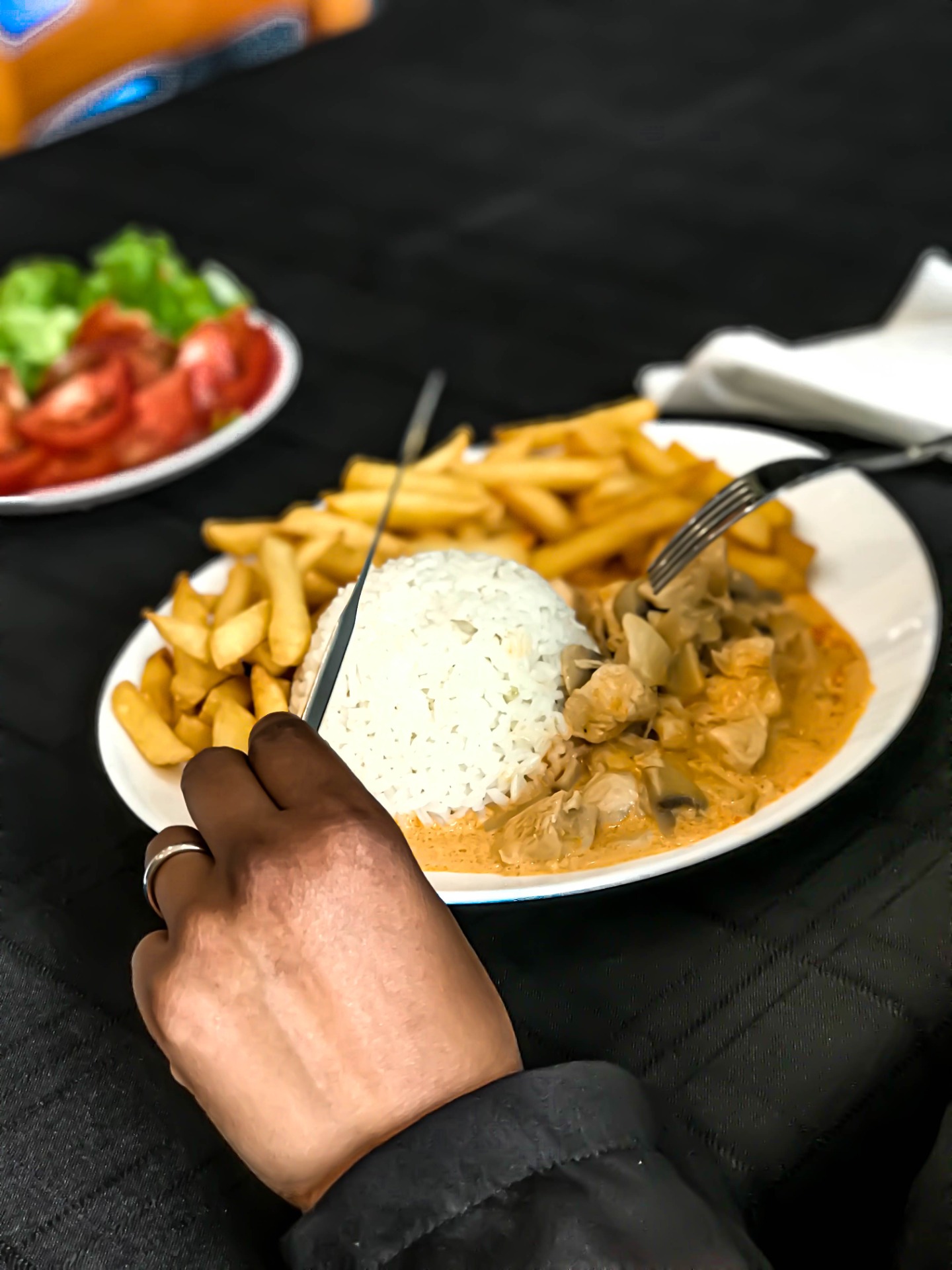 Peixe, arroz e salada